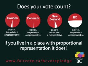 Fair Vote Canada’s Executive Director, Kelly Carmichael states “Canadians need to feel confident that those we elect are honest and act with integrity and put the needs and desire of the citizens of this country before their partisan self-interest. In fact, in the Speech from the Throne, Prime Minister Trudeau appeared to agree with this sentiment as he he continued to laud his plan to unequivocally end first-past-the-post voting system when he stated “The trust Canadians have in public institutions — including Parliament — has, at times, been compromised.”