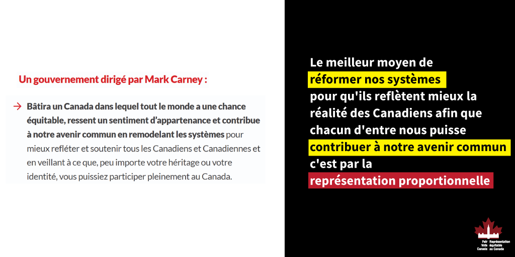 Le Mouvement pour une représentation équitable au Canada demande à Mark Carney d’exprimer son soutien au principe général de la représentation proportionnelle.