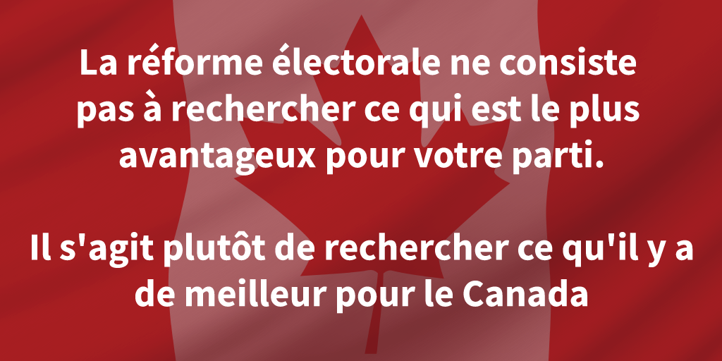 Si notre prochain Premier ministre veut vraiment renforcer l’unité canadienne, construire une démocratie plus forte et plus résistante, et donner à chaque Canadienne et Canadien une voix dans l’avenir de notre pays, il doit mettre ses valeurs en pratique en soutenant la représentation proportionnelle.