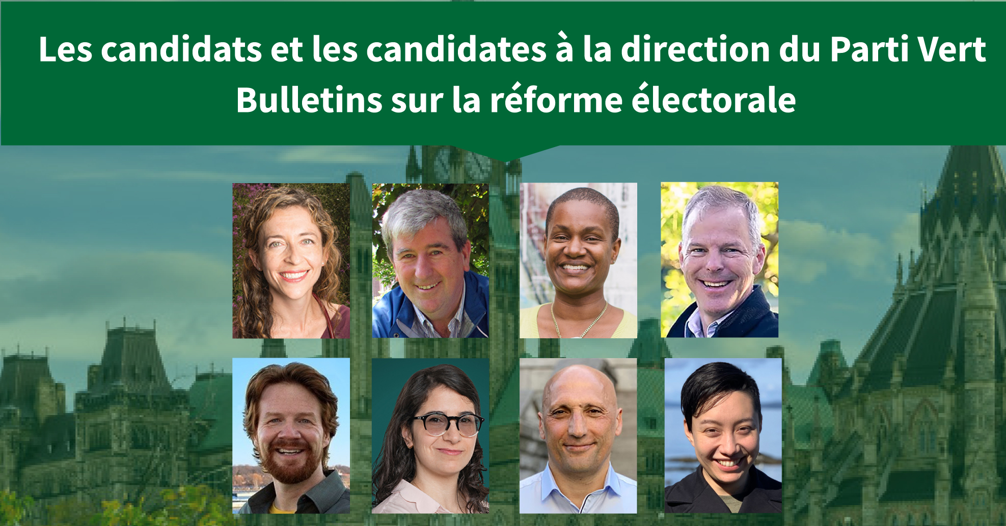 Nous savons que les candidates et les candidats à la chefferie sont favorables à la représentation proportionnelle — ce n’est pas à débattre! Il est également important de noter que ce sont les membres du Parti vert — et non le chef — qui définissent la ligne du parti.