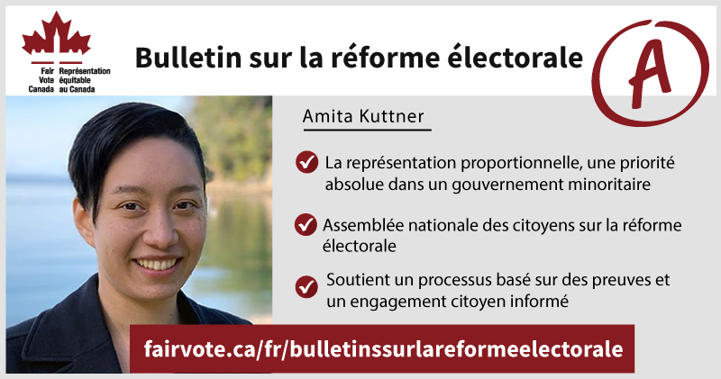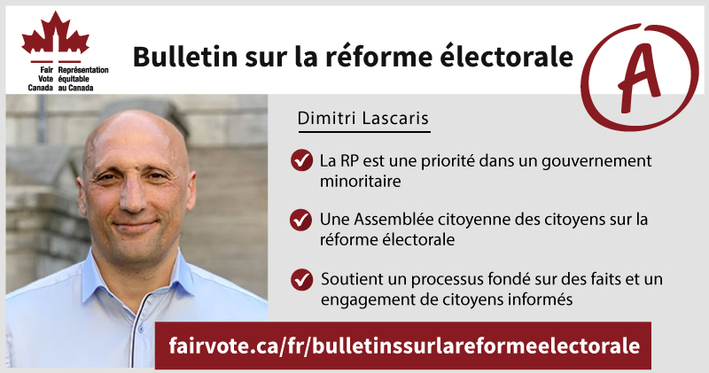 Fair Vote Canada s’implique dans de nombreuses courses à la direction des partis dans le but de s’assurer que celle ou celui qui assume la direction est un champion informé, engagé et passionné de la représentation proportionnelle (RP). Nous n’avons pas de candidate ou de candidat préféré dans cette course, ni de position sur d’autres enjeux. Ce qui compte pour nous, c’est que chacune et chacun ait fait ses devoirs et soit prêt à prioriser l’action en matière de RP!